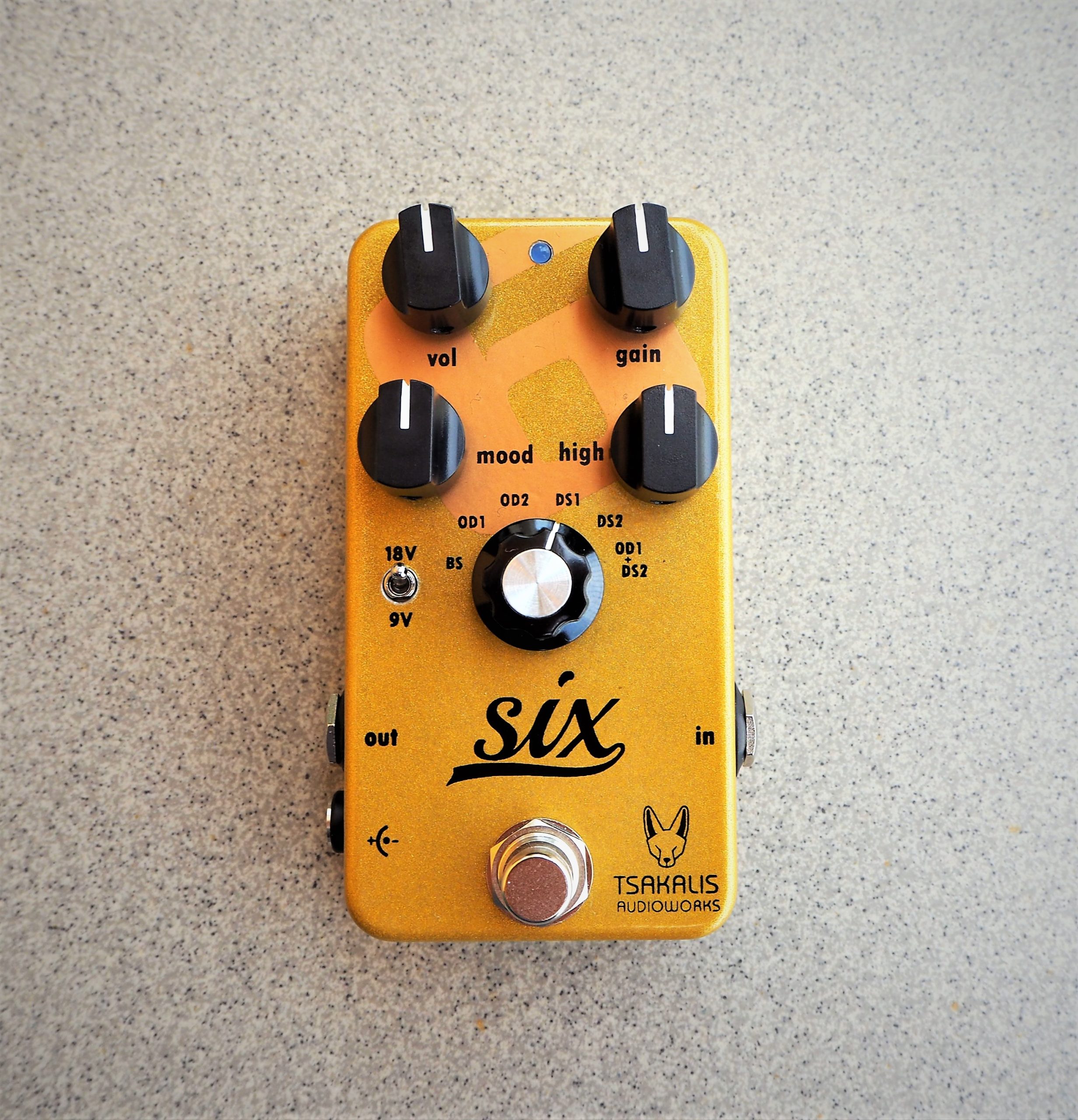 - 6 modes of Booster-Overdrive-Distortion select-able by a rotary switch