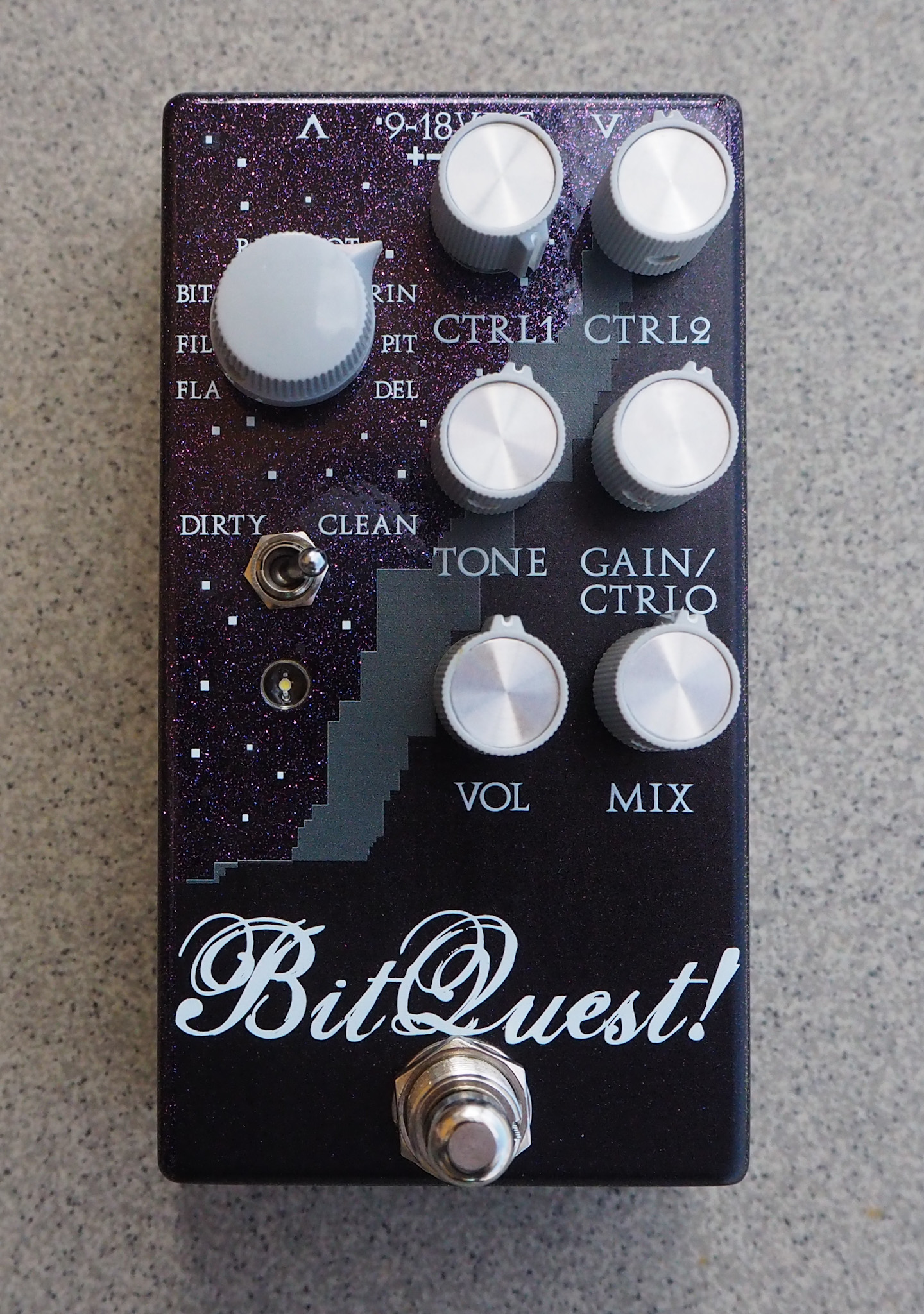 - přepínač: v módu Fuzz přidá digitální zkreslení, v módu Clean odebere zkreslení a přidá vybraný parametr nastavení